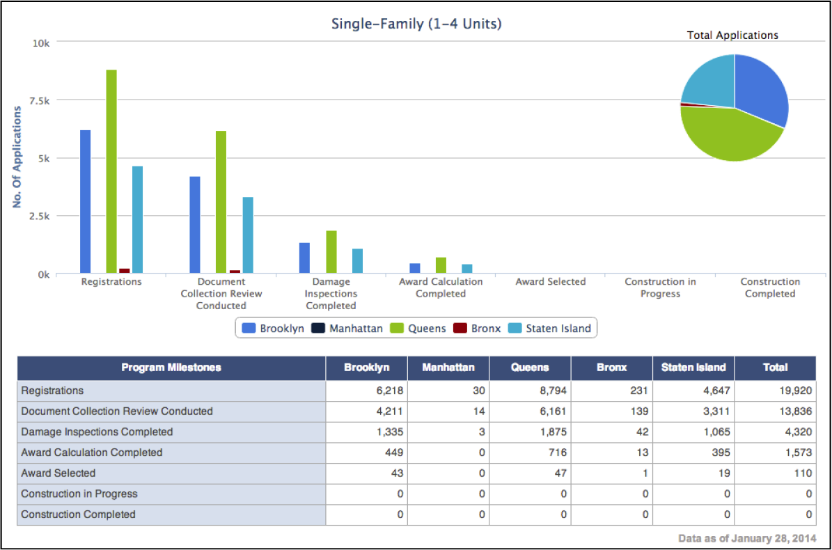 NYC Sandy Funding Tracker, Multi-Family Building Reconstruction, Program Milestones as of January 28, 2014.