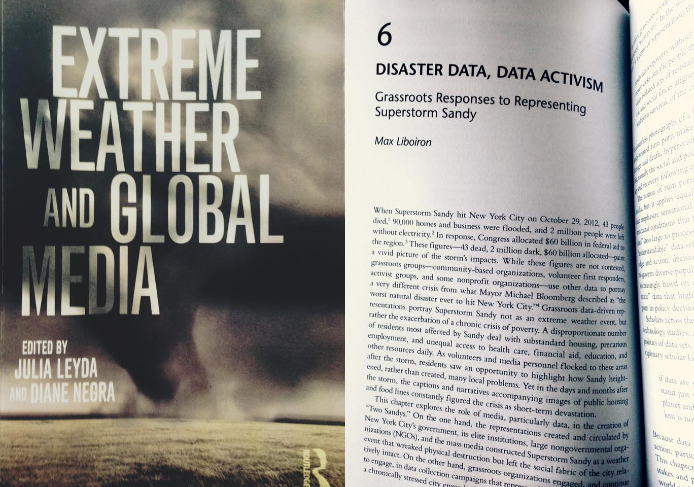 Based on her work with Superstorm Research Lab, SRL member Max Liboiron has published a chapter on “Disaster Data, Data Activism: Grassroots Responses to Representations of Superstorm Sandy” in an edited volume on Extreme Weather and Global Media.